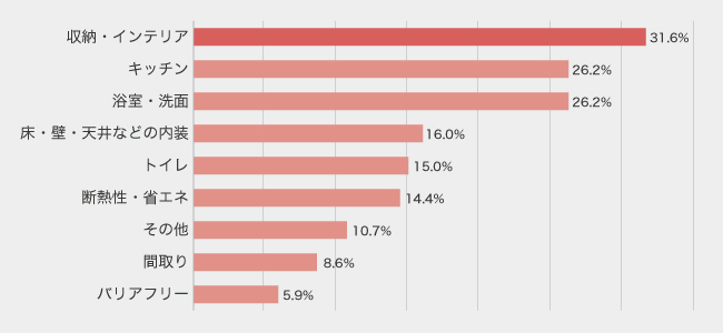 一番多かったのは、「収納・インテリア」。それから「キッチン」「浴室・洗面」と続きます。どう不便を感じるのか、具体的に聞いてみました!