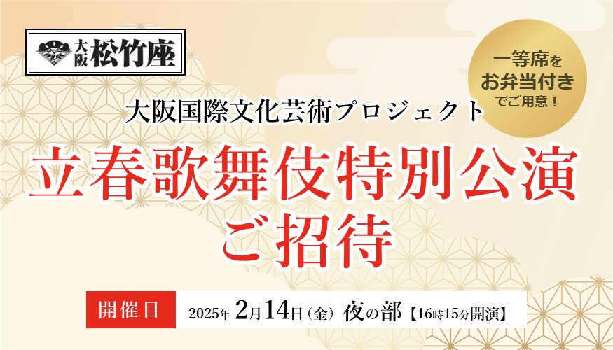 【夜の部】16:15開演 竹田出雲 三好松洛 並木千柳 作 「義経千本桜」 三幕六場 片岡愛之助 宙乗り狐六方相勤め申し候 序 幕 大内の場 堀川御所の場 同塀外の場 二幕目 道行初音旅 清元連中 竹本連中 大 詰 川連法眼館の場 奥庭の場 【主な出演者】 中村鴈治郎、中村扇雀、市川中車、中村獅童、片岡愛之助、中村壱太郎、中村虎之介、市川團子 他 【時間】 15:30 受付開始 ※イヤホンガイド引換券とお弁当をお渡しいたします。 15:45 開場 16:15 開演 20:05 終演(予定) ■お弁当は幕間にお席にてお召し上がりいただけます。 ■舞台の進行に合わせてあらすじ・配役・衣裳・道具・歌舞伎独特の約束事などをタイミングよく、楽しくご説明するイヤホンガイド付きです。会員様ご自身にて直接、貸出カウンターでお受け取り、公演後にご返却いただきます。 ※イベントのチラシはこちらをご覧ください。 |