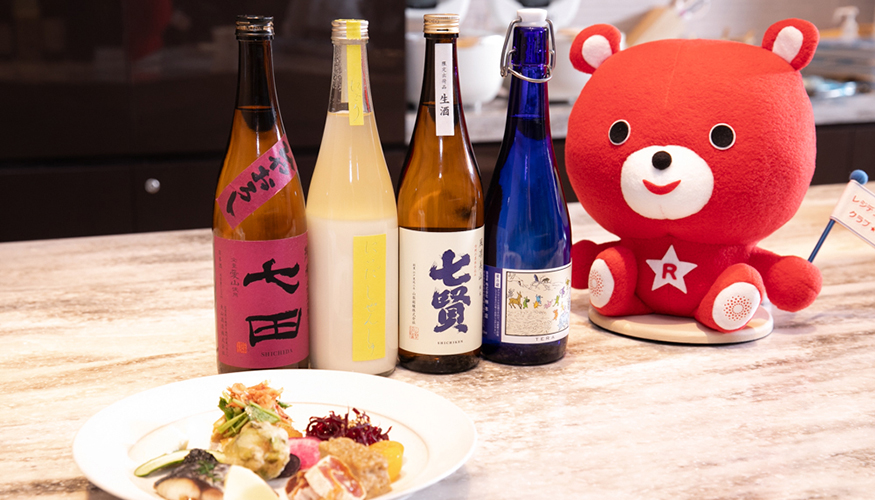 「七賢は生酒のフレッシュ感が魅力で、おそらく誰にとっても飲みやすいお酒だと思います。TERA Life is good!は酸味の強さが特徴。炭酸で割るとレモネードに似た味わいで、きょうのメニューにある柿やクリームチーズとのペアリングがおすすめです。唯一のにごり酒、にいだしぜんしゅ にごりは、実は熱燗にすると甘みが増し、栗のような味わいに変化するんです。にごり酒を熱燗にするというのは、あまり馴染みがないかもしれませんが、ぜひ試してみてください」
