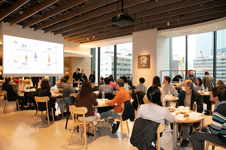 まずは、イベントの講師を務めた日本酒のソムリエ、加藤栄二さん(SSI認定国際唎酒師)によるレクチャーからスタート。精米から仕込みを経て貯蔵されるまでの伝統的な酒造りがわかりやすく語られます。