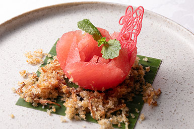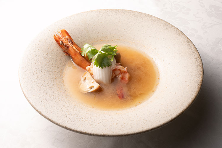 レモングラスやライムなどの生ハーブが香る透き通ったスープは、爽やかさの中にピリッとした辛さが広がり、暑い夏にぴったりの一品。
